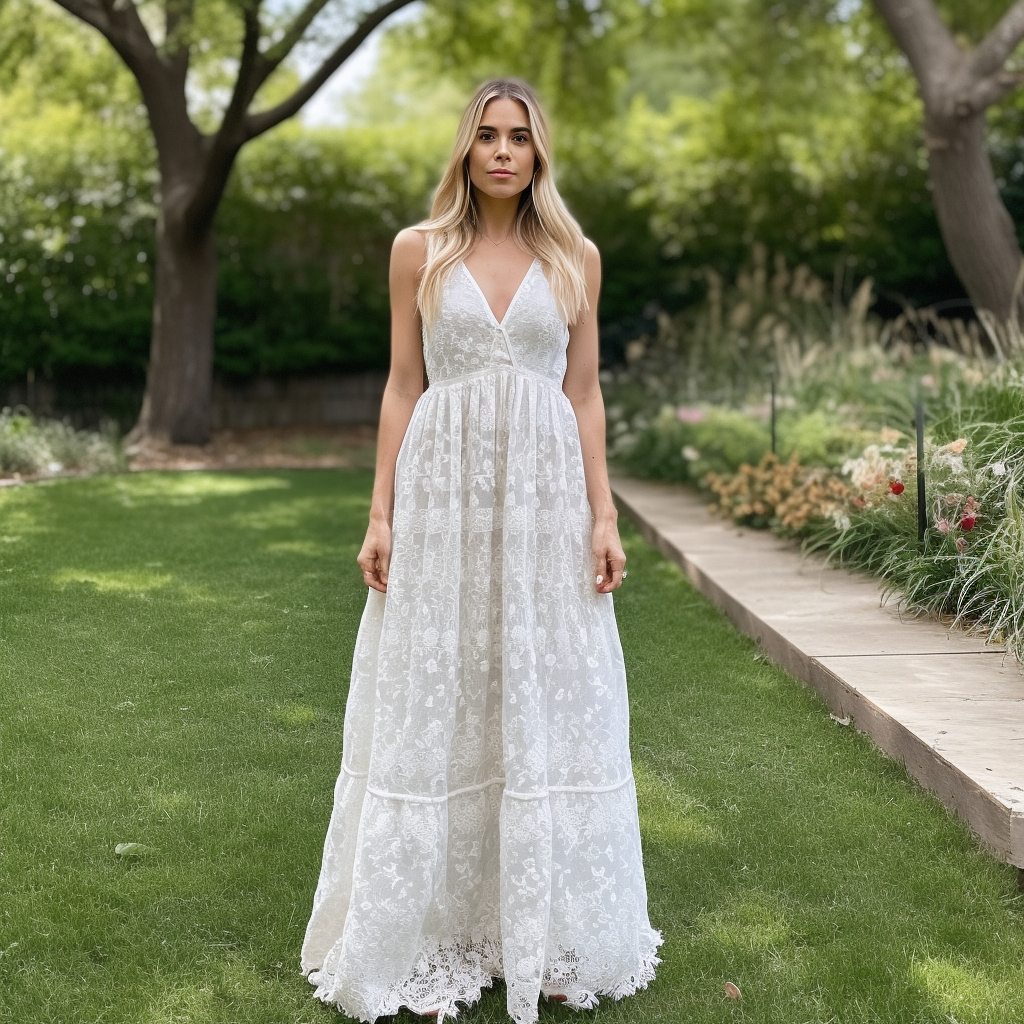 - Stay on trend this season in our new romantic, V neck dress. We especially love the floral print fabric and think this piece will be a new favorite in your closet!